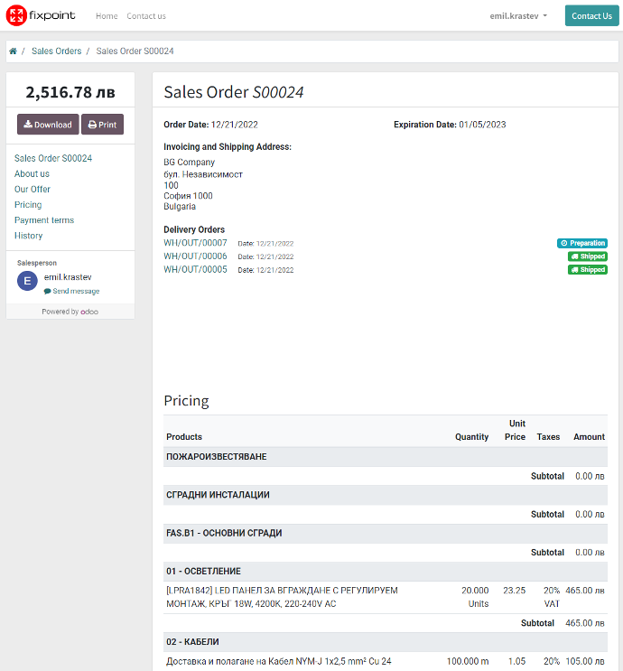 - Приложения: Fixpoint START + Производство, Справки и отчети, Управление на служители и подизпълнители